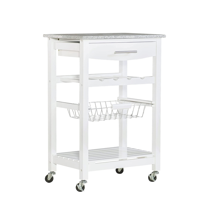 Embellished with a beautiful granite surface, this solid kitchen cart features an elegant design to make every kitchen space look stylish and impressive.