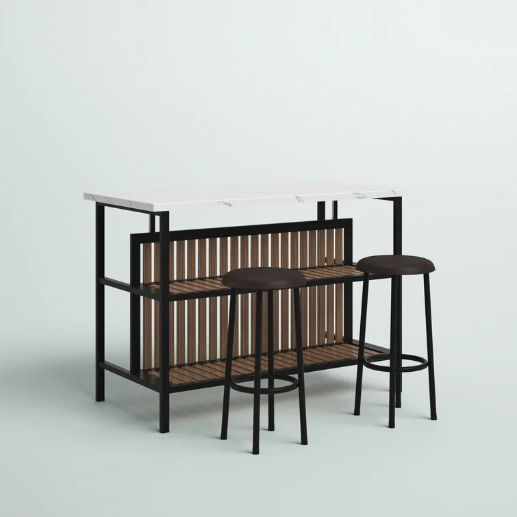 This 3-piece kitchen island set adds a convenient spot to prepare and enjoy breakfast and other meals.