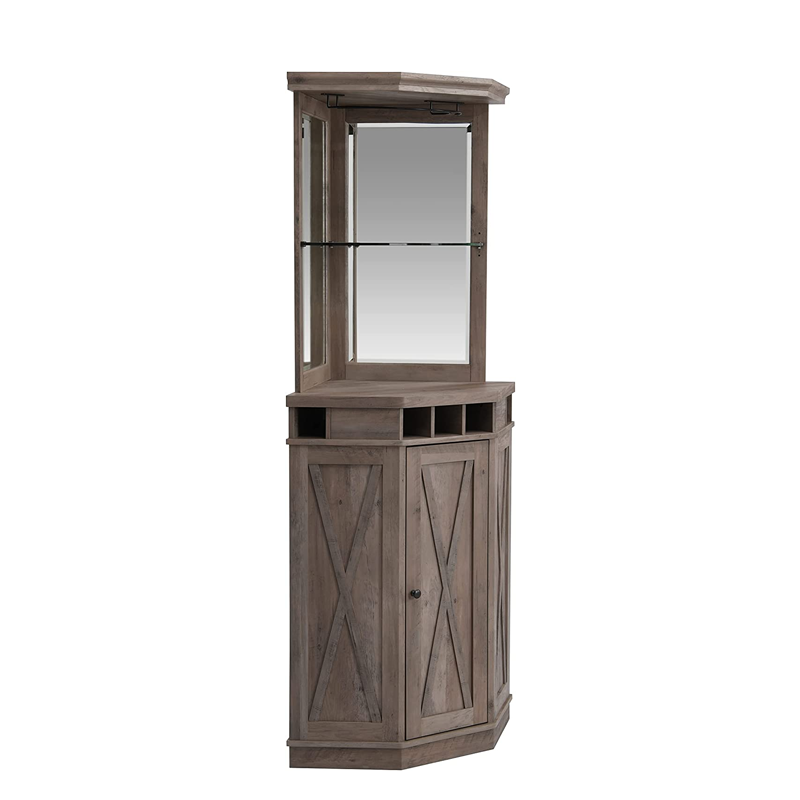 This rustic and vintage styled bar cabinet is both wide and spacious to hold all your bar needs. It is sufficient to store wines, sprites, as a coffee station, etc.